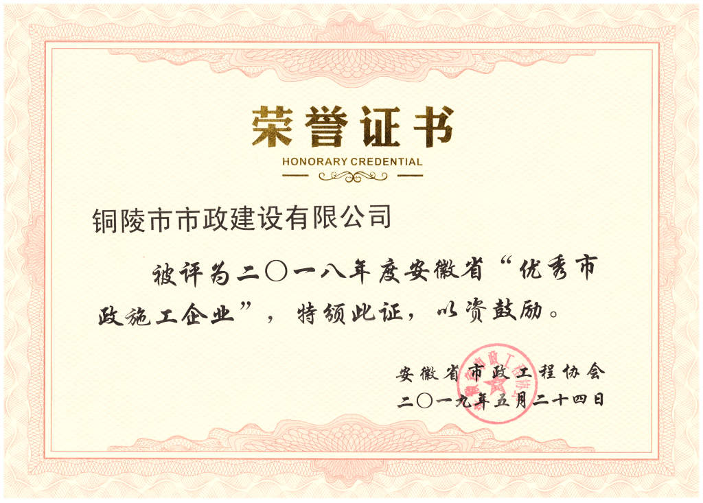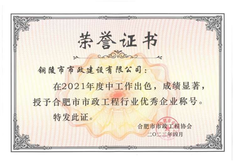 合肥市市政工程行業(yè)優(yōu)秀企業(yè)