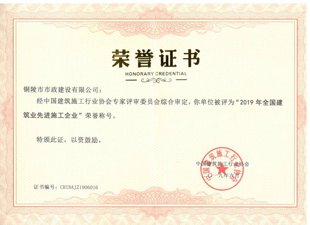 2019年全國建筑業(yè)先進施工企業(yè)