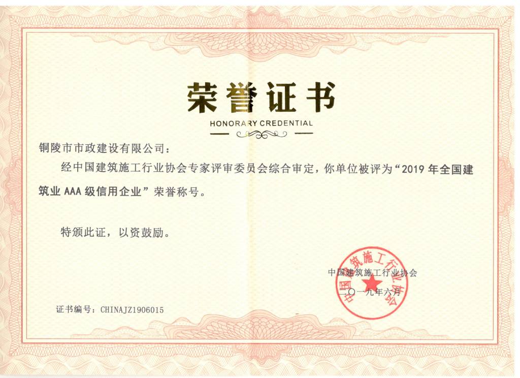 2019年全國建設(shè)業(yè)AAA級信用企業(yè)