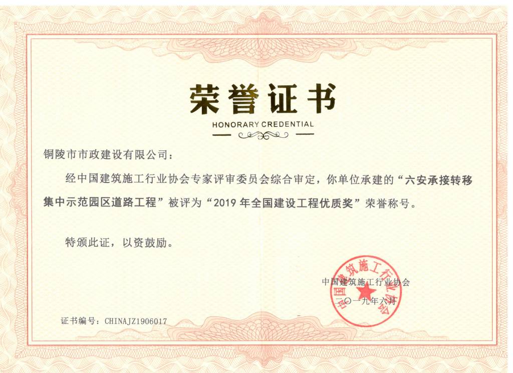 六安承接轉(zhuǎn)移集中示范園區(qū)道路工程全國建設(shè)工程優(yōu)質(zhì)獎