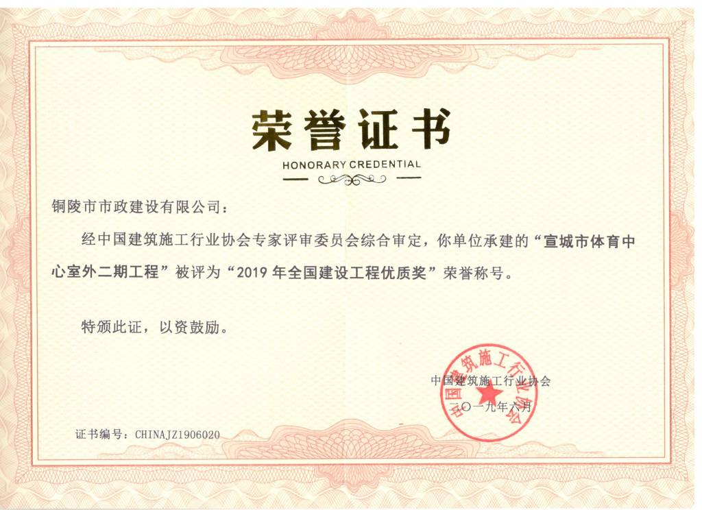 宣城體育中心室外二期工程全國建設(shè)工程優(yōu)質(zhì)獎