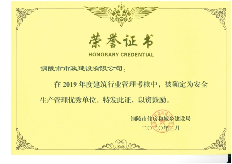 2019年度市安全生產(chǎn)管理優(yōu)秀單位
