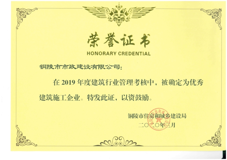 2019年度市優(yōu)秀建筑業(yè)企業(yè)