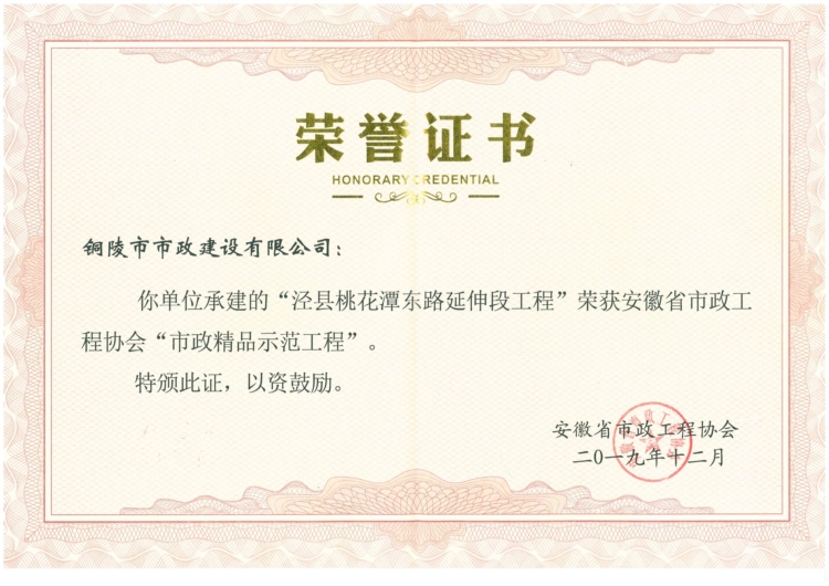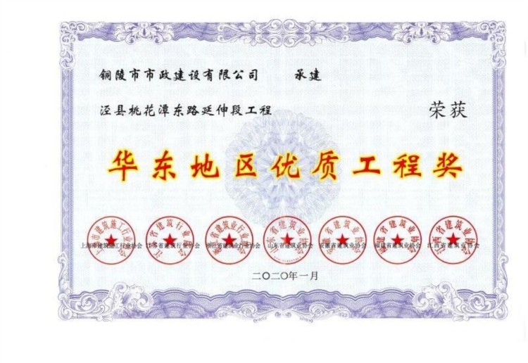 “涇縣桃花潭東路延伸段工程”華東地區(qū)優(yōu)質(zhì)工程獎