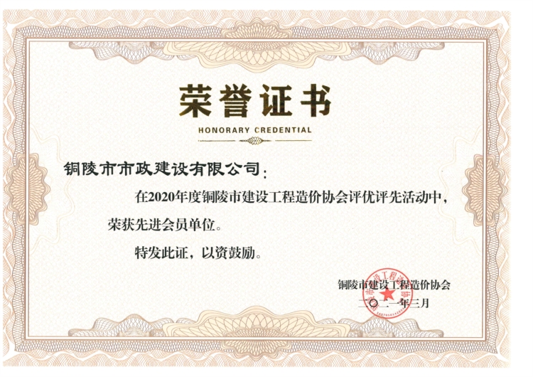2020年度銅陵市建設(shè)工程造價協(xié)會先進會員單位
