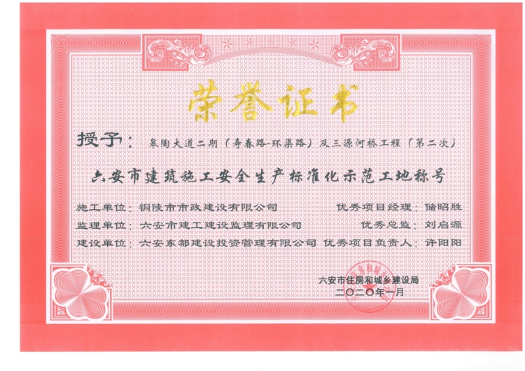 2020.01皋陶大道二期(壽春路-環(huán)渠路)及三源河橋工程(第二次)六安市建筑施工安全生產(chǎn)標(biāo)準(zhǔn)化示范工地