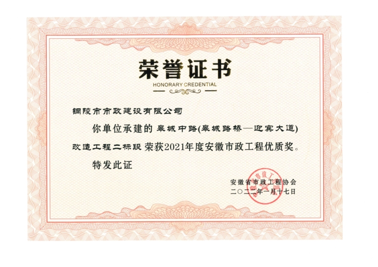 2021年度安徽市政工程優(yōu)質(zhì)獎