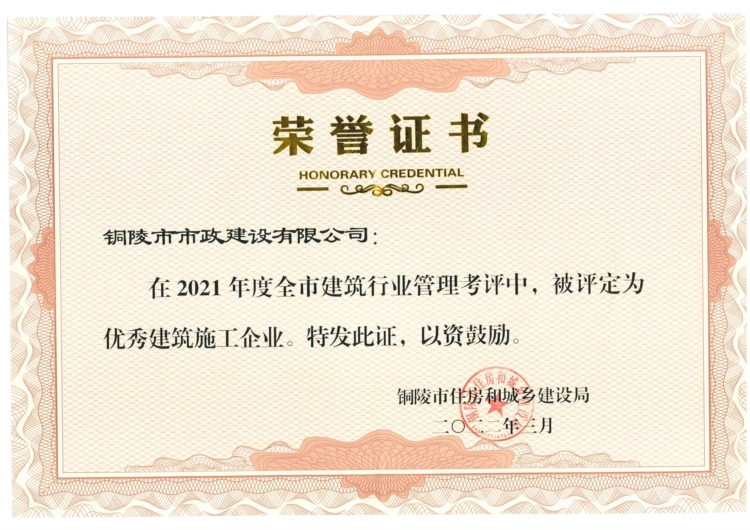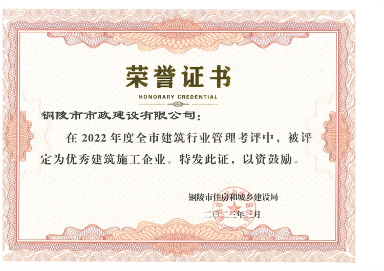 2022年度銅陵市優(yōu)秀建筑施工企業(yè)