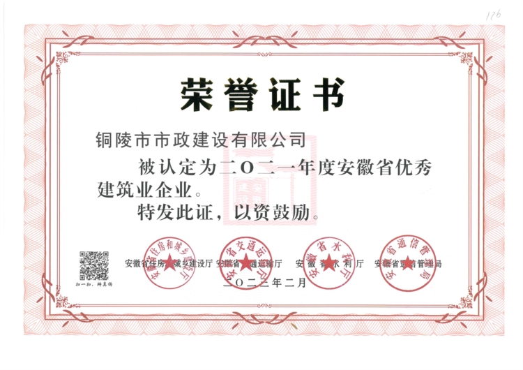 2022年度安徽省優(yōu)秀市政施工企業(yè)