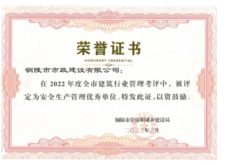 2022年度安全生產(chǎn)管理優(yōu)秀單位