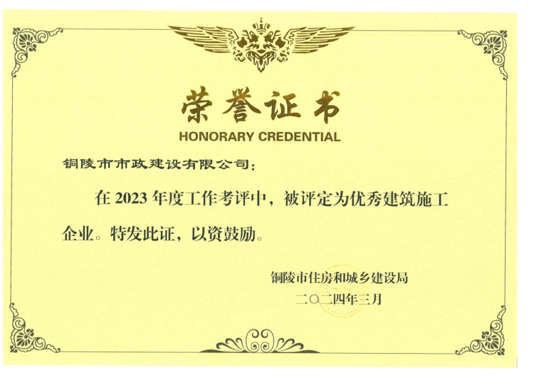 2023年度銅陵市優(yōu)秀建筑施工企業(yè)