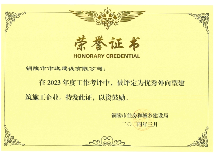 2023年度銅陵市優(yōu)秀外向型建筑施工企業(yè)