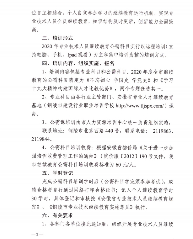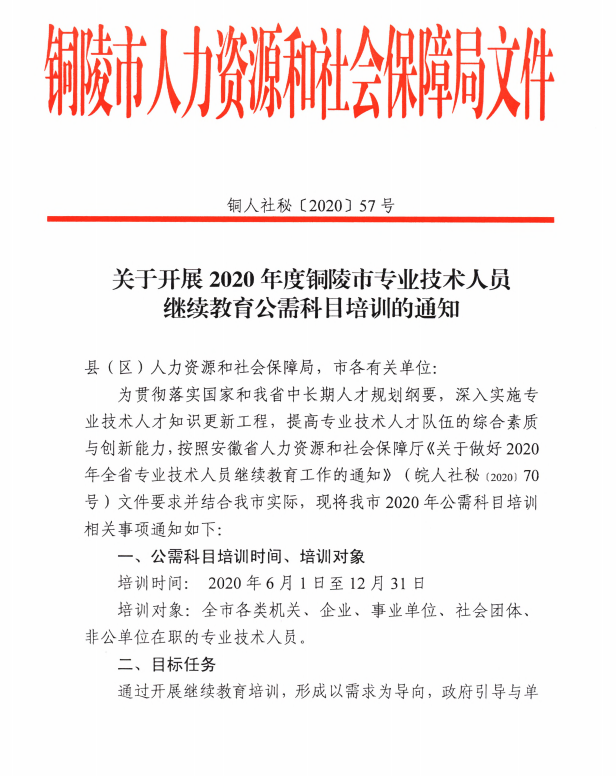 關(guān)于開(kāi)展2020年度銅陵市專(zhuān)業(yè)技術(shù)人員繼續(xù)教育公需科目培訓(xùn)的通知