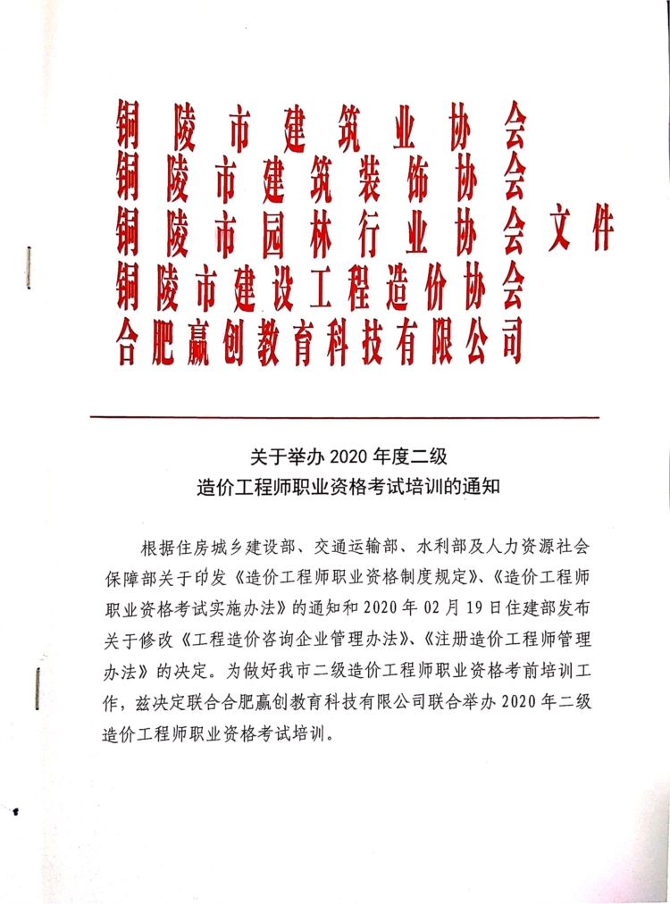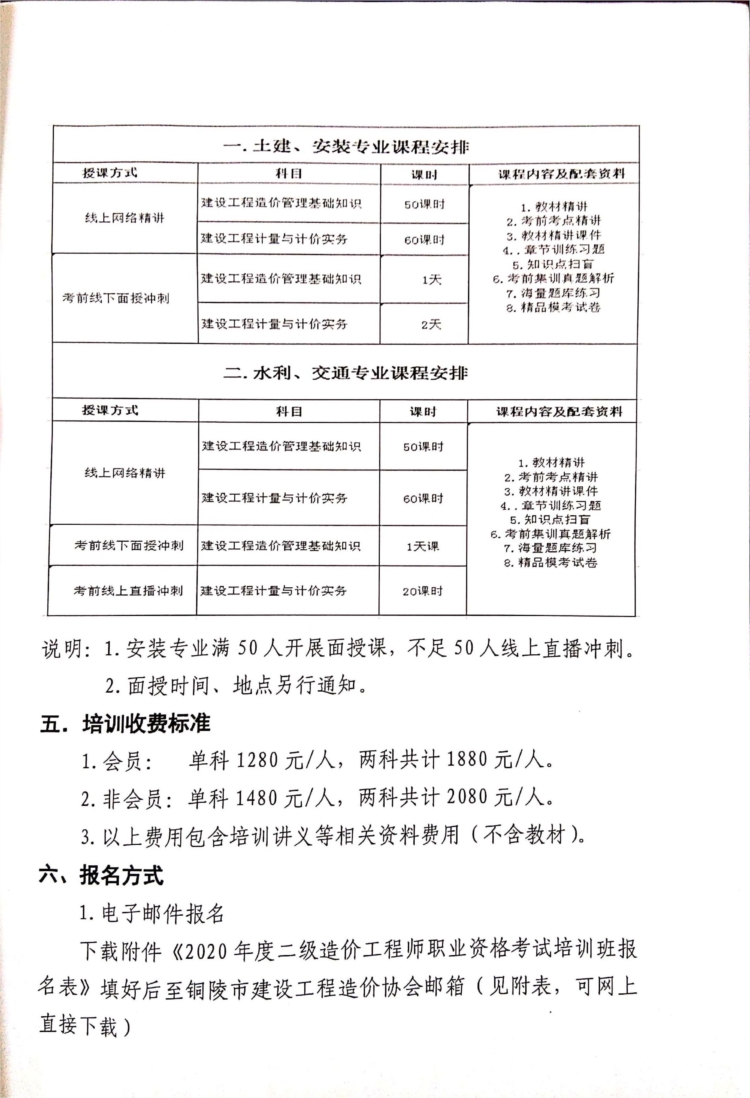 關于舉辦2020年度二級造價工程師職業資格考試培訓的通知