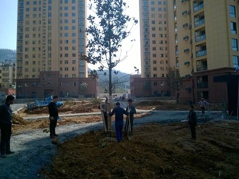 二、聯(lián)盟新苑景觀及綠化施工正在加班加點(diǎn)栽植施工進(jìn)行中。