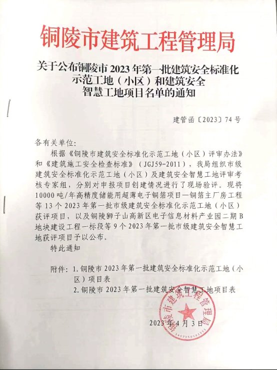 年市級“建筑安全標準化示范工地(小區)”及市級“建筑安全智慧工地”獎項。