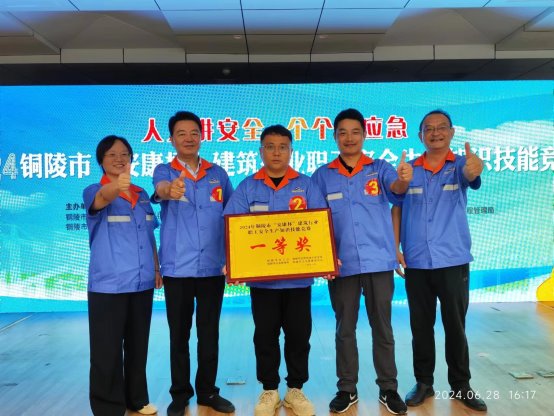 2024年6月28日,由公司李生、王佳和章文濤組隊(duì),代表銅陵市政參加2024年銅陵市“安康杯”建筑行業(yè)職工安全生產(chǎn)知識(shí)技能競(jìng)賽,銅陵市政隊(duì)經(jīng)奮力拼搏在理論筆試初賽中脫穎而出,進(jìn)入了初賽選拔的10支建筑企業(yè)代表隊(duì),并在搶答技能競(jìng)賽決賽中榮獲“一等獎(jiǎng)”獎(jiǎng)項(xiàng)。在本次競(jìng)賽中圍繞建筑行業(yè)安全生產(chǎn)的知識(shí)技能,經(jīng)過必答題、搶答題、風(fēng)險(xiǎn)題、附加題四個(gè)環(huán)節(jié),決出此次競(jìng)賽的名次,推進(jìn)了建筑行業(yè)落實(shí)好安全投入、安全教育、安全檢查、安全監(jiān)督等工作,切實(shí)保障職工身體健康和生命安全,增強(qiáng)了職工自我防護(hù)及提高了安全生產(chǎn)意識(shí)。